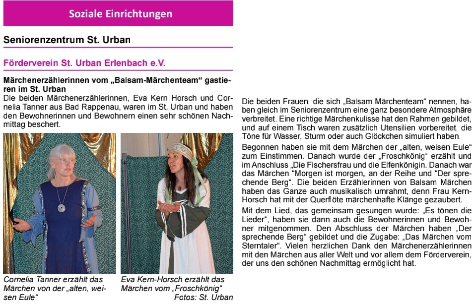 2025-03-28: Märchenerzählerinnen vom Balsam Märchenteam gastieren im St Urban – Mitteilungsblatt Erlenbach